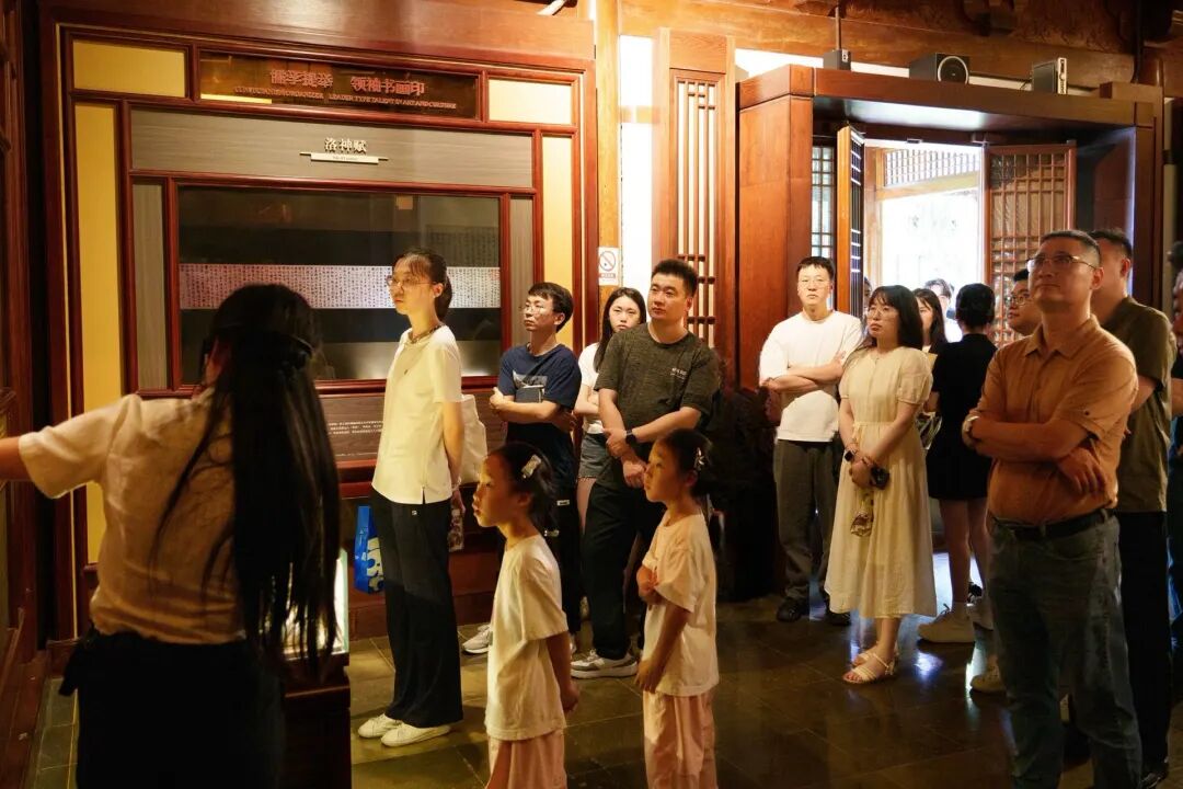 开展“廉洁+非遗”文创活动。迭代升级集团“人文湖州·清萃文旅”廉洁文化教育专线,充分挖掘湖州非遗文化中的廉洁元素,推动廉洁文化创意与相关产业深度融合。图为集团开展“笔墨铸廉韵 非遗扬清风”活动,组织参观赵孟頫故居旧址纪念馆,体验非遗制笔工艺。