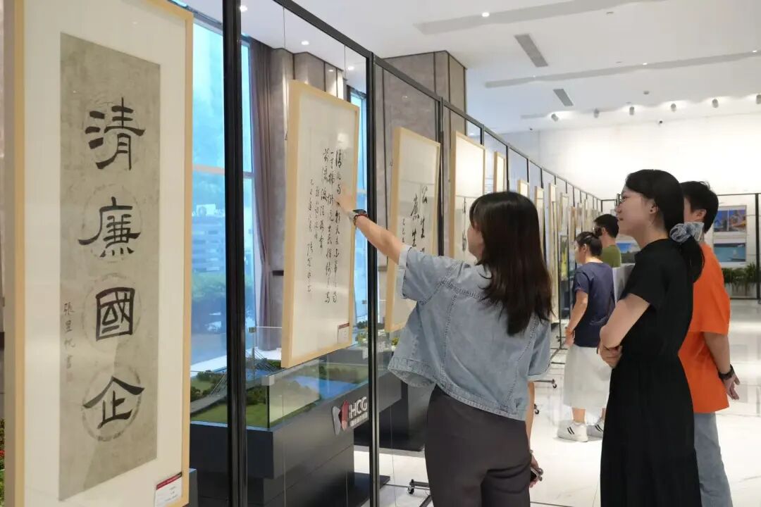 开展“廉洁+书画”征集活动。组织干部职工以书法、绘画、摄影等形式为载体,创作展示一批反映时代精神和集团特色的廉洁文化作品,切实营造崇廉尚廉浓厚氛围。图为集团举办“清风墨韵・廉影随行”廉洁文化作品展。