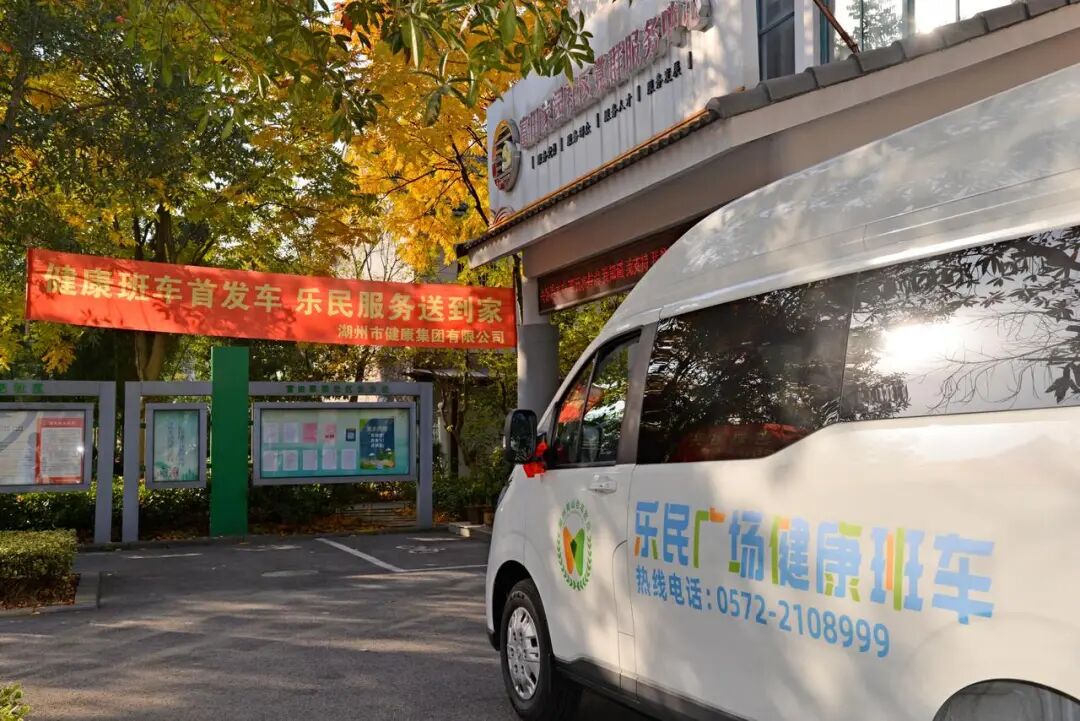 为提高助老服务的普惠性,2023年11月,健康集团创新开出全市第一辆“健康班车”,将服务从“定点驿站”升级为“移动网点”,定时定点将健康送到更多居民家门口。